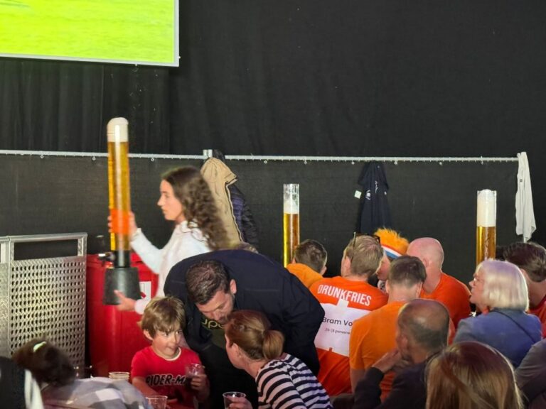 Het Nederlands elftal heeft de eerste wedstrijd op het EK uiteindelijk met 2-1 gewonnen van Polen en dat was feest! De tent ging twee keer op zijn kop: Bij beide doelpunten wel te verstaan.