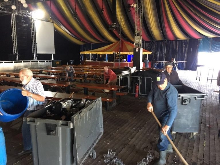Ze waren vanochtend weer vroeg uit de veren om het hele terrein er weer spik en span bij te laten liggen. Zowel binnen als buiten de tent waren de harde werkers zoals ieder jaar weer van de partij. Voorzitter Kasper Put: ’Wederom een grote opkomst, super mooi! Even aanzetten en de mensen hebben het terrein weer opgeruimd. samen. Ik heb even contact gehad met Wim Sander en dat was het wel, deze groep regelt bijna alles zelf. Wij zorgen voor het materiaal, dat werkt top!