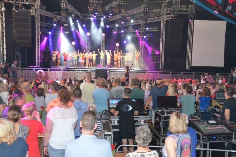 Het was weer een bonte tocht van de Petrusschool richting het feestterrein voor de jaarlijkse dansvoorstelling van “alle” leerlingen. Begeleid door muziekvereniging Amuzant ging het in colonne richting de weide. Het waren deze keer niet alle leerlingen: Het gros van de meiden van groep 8 bevonden zich op het nationaal kampioenschap schoolhandbal waar ze vanmiddag om 15. 00 uur de halve finale gespeeld hebben, hierover later meer op deze site. Maar de mannen van groep 8 hebben het fantastisch geingevuld! Dit gold trouwens voor alle leerlingen: Ga er maar aanstaan in zo’n volle tent! Klasse!
