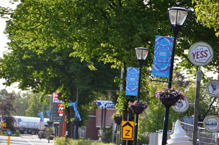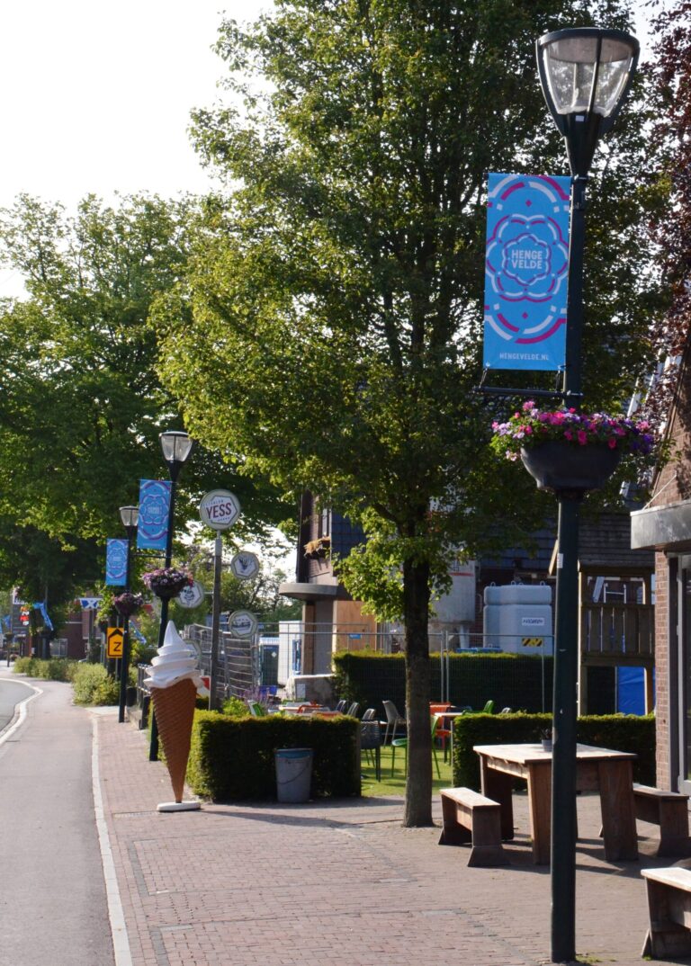 Het was jarenlang een vertrouwd beeld dat de lantaarnpalen in Hengevelde rond de zomerfeesten werden versierd. De oude versiering begaf het echter jaren geleden en in die tussentijd bleef de straat onversierd. “We hebben de ontwikkelingen rondom de aanpassingen van de Goorsestraat even afgewacht, alvorens we nieuwe straatversiering konden laten maken. Dat is nu gebeurd, maar door een productiefout valt de kwaliteit helaas tegen”, aldus het nieuwe bestuurslid Sanne ten Thije.
