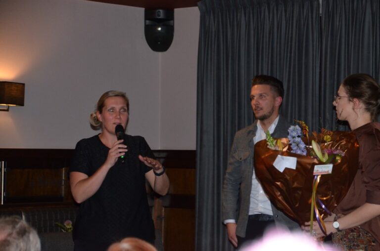 De avond werd feestelijk geopend door WegdamNieuws die aan de familie Assink de prijs uitreikte voor de jaarlijkse actie ‘met de vlag op vakantie’.